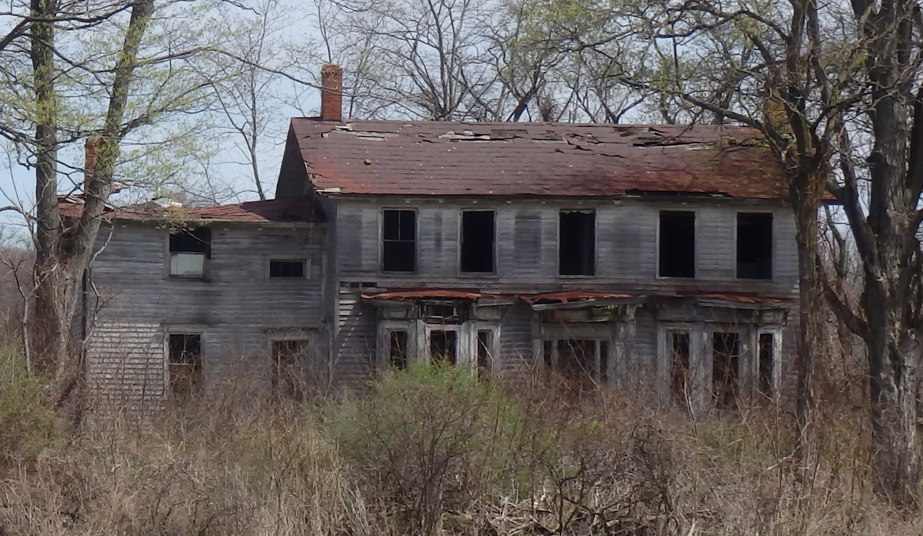 One time, the kids and I stopped to explore a large deserted house on Townline road near Trumansburg. It still had its roof and didn’t look too bad, so we squeezed through a door coming off its hinges. Plaster and lath which had fallen from the ceilings in the three spacious rooms we could see - littered the floor. Carefully, the three of us made our way to a big room that still had a few glass panes in the windows. A wide staircase beckoned, and I made the kids wait while I went up. It seemed safe enough so I waited for them to catch up to me.