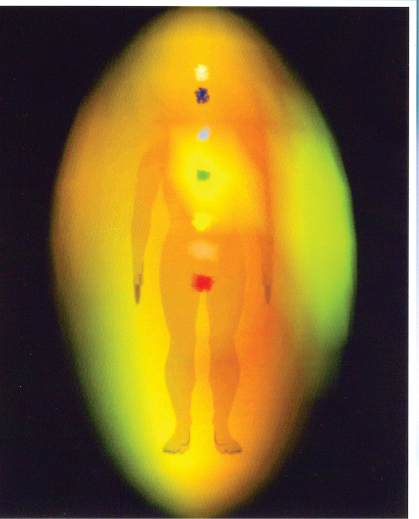 The second aura photo was later in the day after I had given Reiki sessions and was still in that healing mode. Notice the shift in aura color from Orange (representing artistic, physical-creative expression, excitement) to White (representing beyond physical, transcendent, higher dimension.) The Mind Body Spirit ratio, not shown here, goes from 20% Spirit and 80% Mind/Body before doing Reiki, to 85% Spirit and 15% Mind/Body in healing mode.