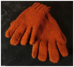 This pair of wool gloves was knitted at least sixty or seventy years ago by Ernie Thomas, famous in my family, but dead before I was born: a lumber jack, camp carpenter, and trapper, who (with his son Harlan, built a camp in the late nineteen twenties on the island people used to call Failing's Island but we call Loon Island, close to the North Shore of Lake Bonaparte. The camp has a big central fireplace to which they connected a big box stove for heating during the hunting and trapping seasons.